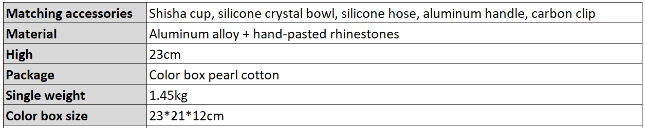 | Color | Black + Red Diamond, Black + Black Diamond, Black + Purple Diamond, Black + Mixed Color Diamond, Black + Champagne Gold Diamond |